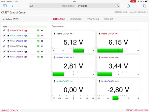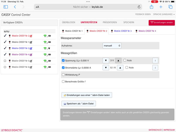 Le CASSY Control Center est le centre de contrôle pour les enseignants pour l'accompagnement et le soutien des expériences des élèves avec CASSY: