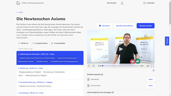 plus de 120 cours complets en ligne (40 min chacun), adaptés à tous les programmes et plans de formation des écoles secondaires de tous les Länder allemands