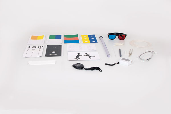 Matériel de montage trié par composant pour plusieurs groupes de travail correspondant à la taille de bloc choisie, le tout rangé dans une boîte.