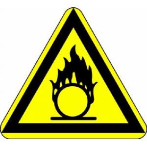 Signal d'avertissement: Mise en garde contre des substances favorisant l'incendie, selon DIN 4844 et