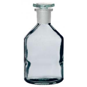 Flacon bouché émeri, 100 ml, col large, verre blanc, bouchon polyéthylène